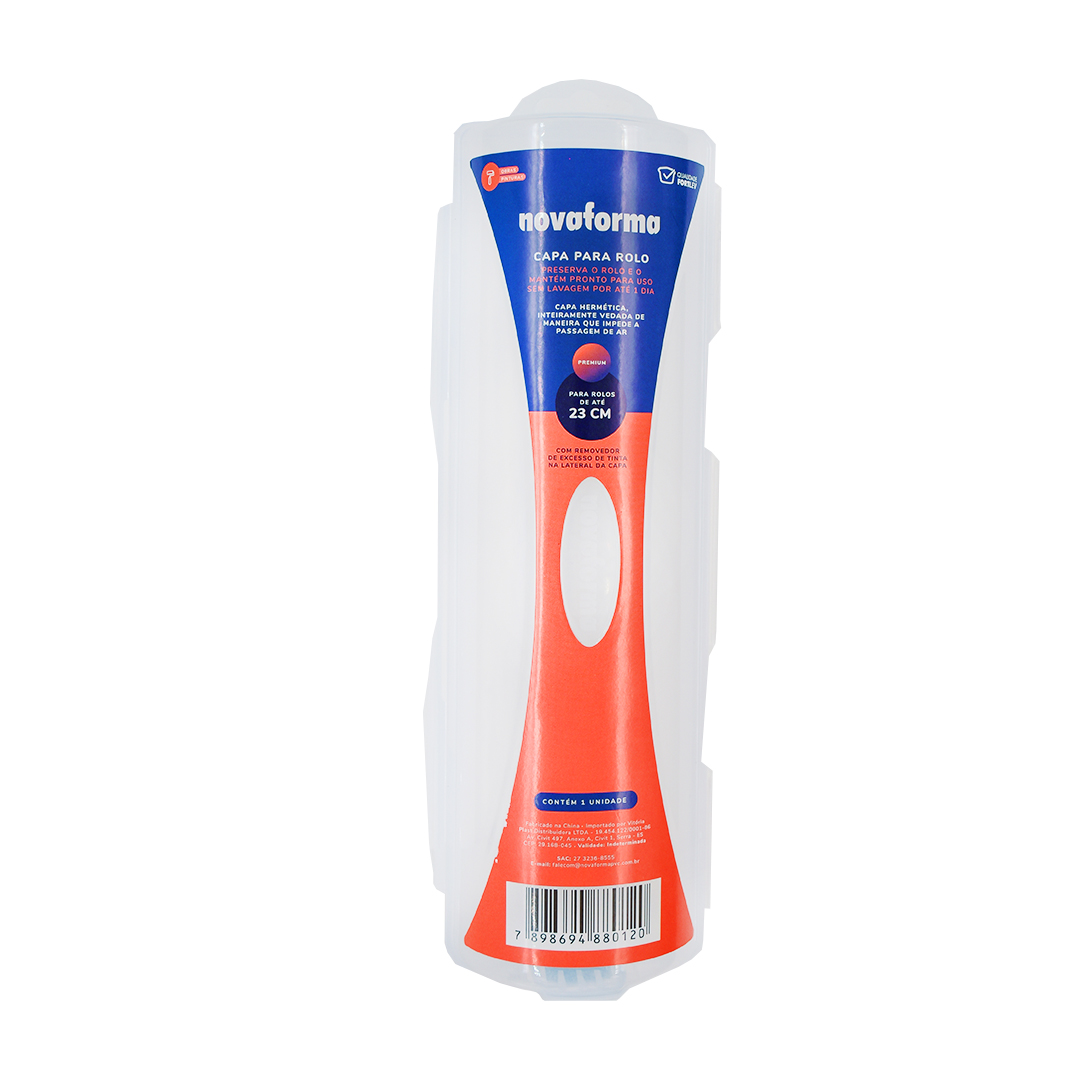 A Capa para Rolo Premium – 24cm conta com fechamento hermético e vedação completa, impedindo a passagem de ar e mantendo o rolo pronto para uso por até 24 horas, sem necessidade de lavagem. Além disso, possui um limpador embutido, que ajuda a remover o excesso de tinta, otimizando o reaproveitamento do material.