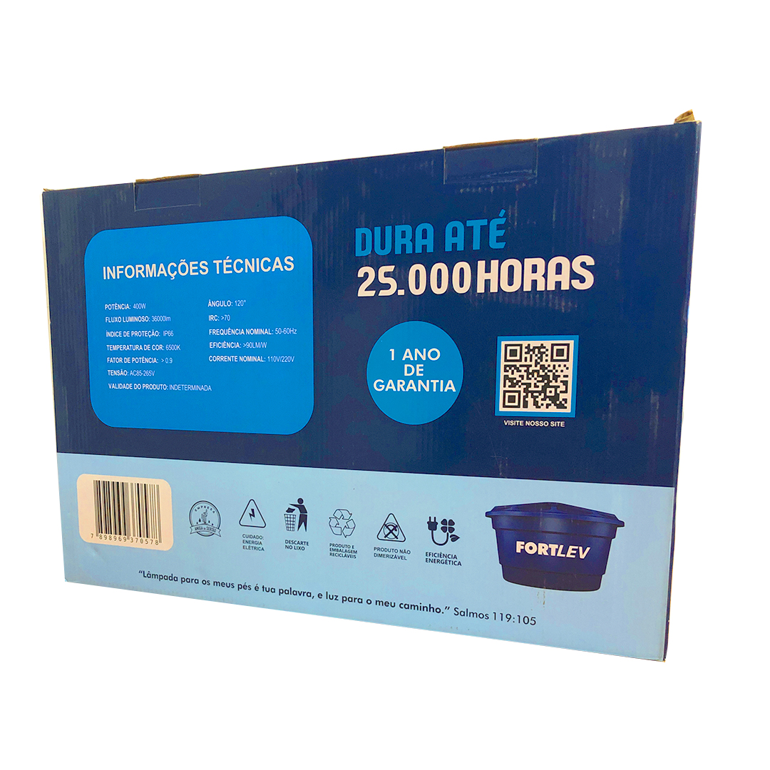 O Refletor LED 400W FORTLED foi desenvolvido para oferecer alto desempenho luminoso com uma distribuição homogênea da luz. Ideal para valorizar ambientes internos e externos, proporcionando conforto visual e realce decorativo.