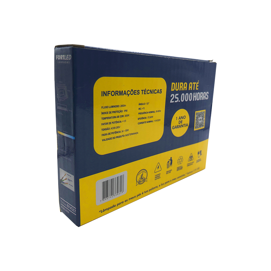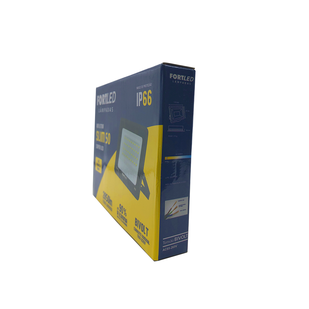 Refletor SuperLed Slim 50W – Luz Amarela