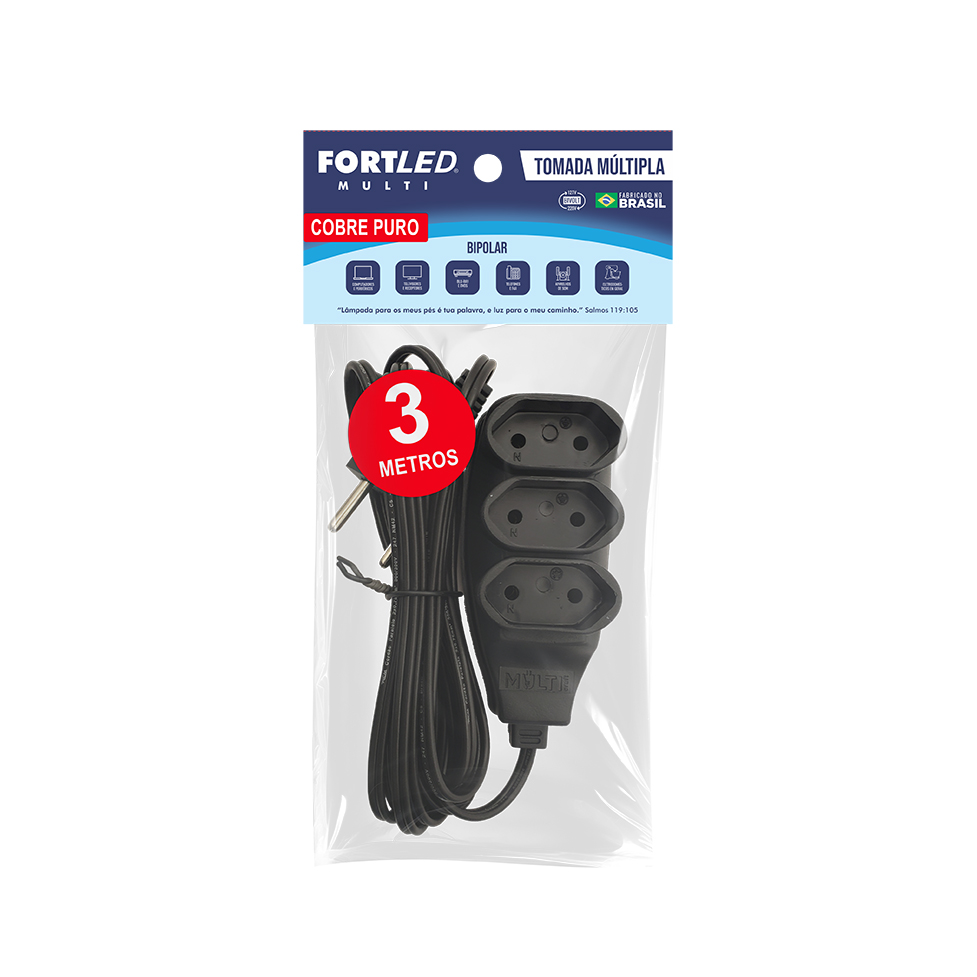 Mais conexões com total segurança! A Tomada Múltipla FORTLED é a solução ideal para quem precisa de mais entradas com qualidade, resistência e proteção no uso diário.